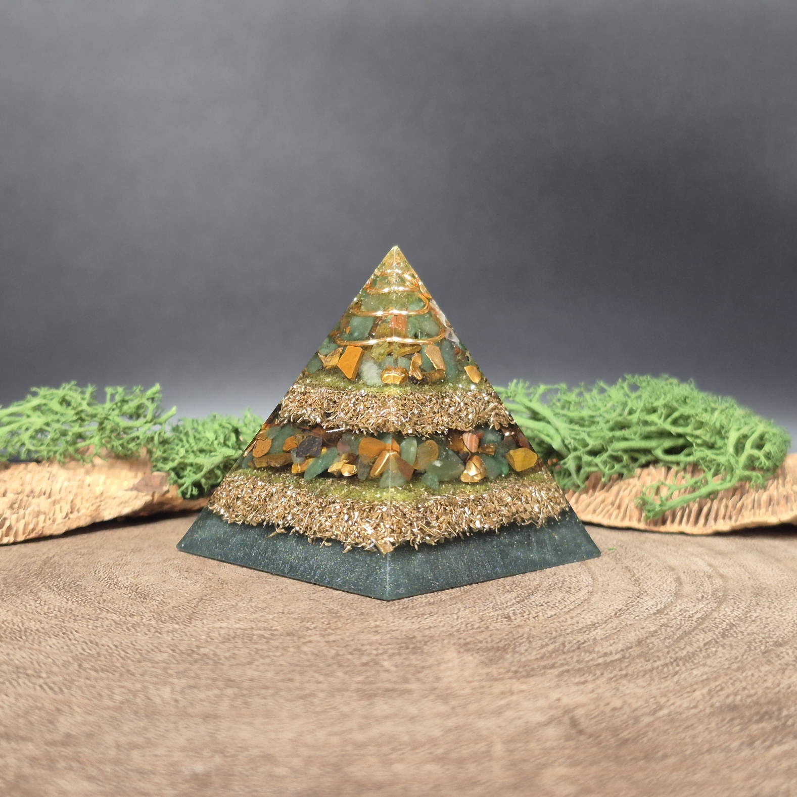 Een rustgevende piramide die ontspanning brengt in het hoofd en in het lichaam. Dicht bij jezelf. Werkt in op de hartchakra. Verwerking van emoties. Opent de energie in de buik. Opent het derde oog.